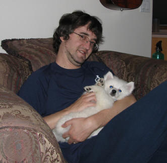 Dave is holding Barclay in a submissive position, which we practice with him everyday, at our vets advice. It’s supposed to be a gentle way to remind him what his place is! Sometimes he just lays there, and sometimes he pitches a fit before he gives up and relaxes.