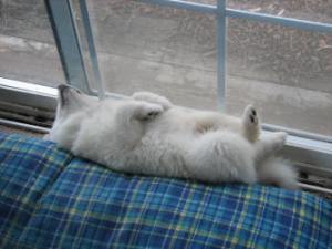 After a hard day of playing, Barclay collapses wherever he happens to be. I can even pick him up and move him around and he doesn’t wake up!