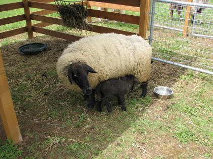 After a few minutes the gimpy lamb stood up and took some milk from mom. Last I checked she had made a little nest in the straw and everyone was resting comfortably.