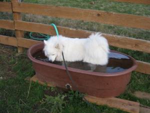 Afterwards there’s nothing like a dip in the pool – or the sheep trough, whatever you have handy!