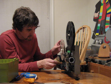 A little projector surgery later and Dave had replaced it with a new rubber band and got the whole thing going again. Next post I’ll have to show off some shots of what we saw!