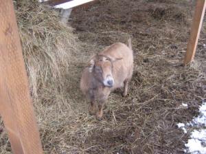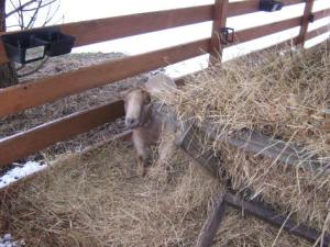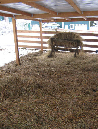 I put the manger under the shelter so the hay wouldn’t get wet, and as they pull it down and leave behind the stemmy bits it ads to the straw they sleep on, so it actually looks pretty cozy in there.