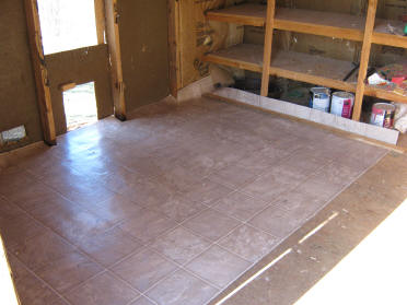 I cleared out the shed on that end and laid down a 9 x 6 roll of floor vinyl, then screwed it to the floor with wood strips on each end.