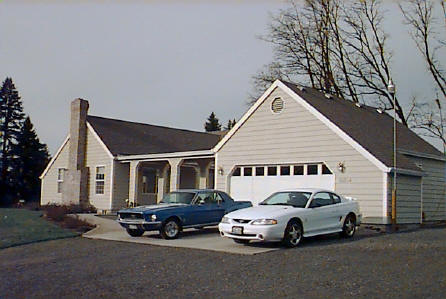 So here we are at our new (to us) house, complete with my Mustangs in the driveway. I really miss that white one, that was a nice car – black leather, big stereo, comfy. Terrible handling though. Maybe I don’t miss it that much. Notice the color of the house. Dave said it was taupe. I don’t think that’s a real color. When people asked me what color my house was I’d say yellow, and Dave would say ‘no it’s not’, so we’d go outside and look and sure enough, it wasn’t yellow, but it wasn’t really any color! Note that it looks the same color as it does in the picture above, and that picture is black and white! Well, we soon solved the color problem.
