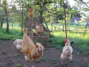Lots of grass and trees in our orchard for the chickens to hang around in and scratch around hunting for buggies and stuff. Of course their favorite area is right by the gate, so they have that scratched down to mud.