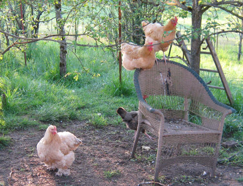 I set that chair out there so I could sit out there and enjoy the chickens, but they like to perch on it, and from the amount of poop on it, I have to admit that chair is pretty much theirs forever now – ew! I go in and hose it off every now and then.