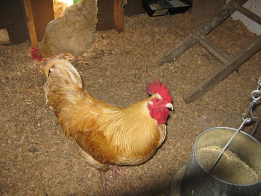 Big Bird and I have established an uneasy truce. When I tell him to leave the coop so I can pick up eggs, he does, and he will eat out of my hands and let me pet him and pick him up. I still don’t turn my back on him though. The other day I told him to get out of the coop and he looked right at me, pecked my foot, and then ran out as fast as he could – sneaky bird!