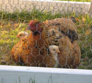 Big Red and her happy chicks in the ‘maternity ward’ enjoying a warm afternoon. It was just starting to get chilly as the sun went down, and the chicks snuggled up under her to stay warm.