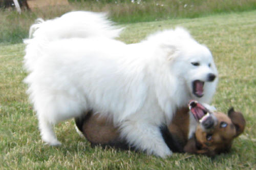 Barclay and Jack were playing hard the other evening, and what great expressions they get on their faces. They look so fierce! If you didn’t know they were playing you’d think they were trying to kill each other! It’s just great to see them playing, they are best buddies πŸ™‚