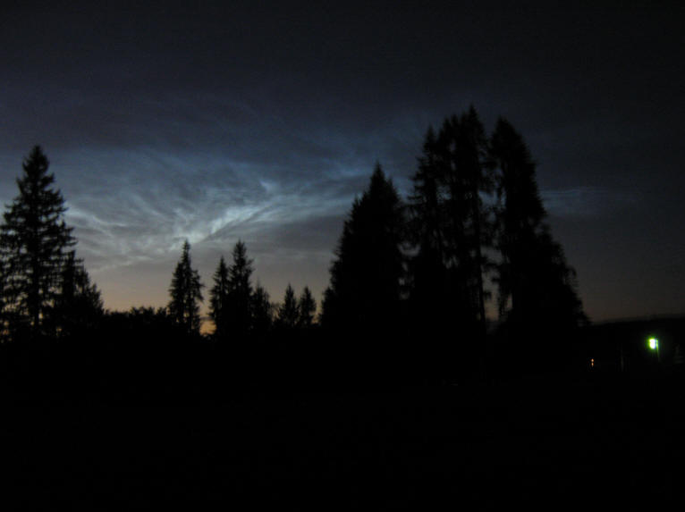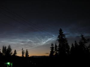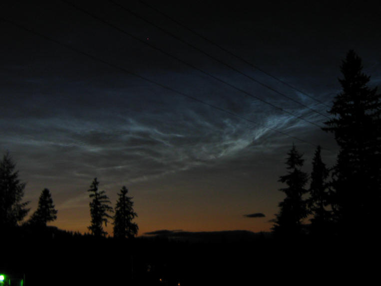 I’ve read about these clouds several times in the astronomy related newsletters I subscribe to, and I think this evening we got a rare showing of them! I walked outside to play with the dogs and I looked out at the sunset and saw these beautiful, whispy, ice-blue clouds in the East.
