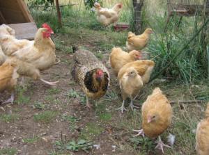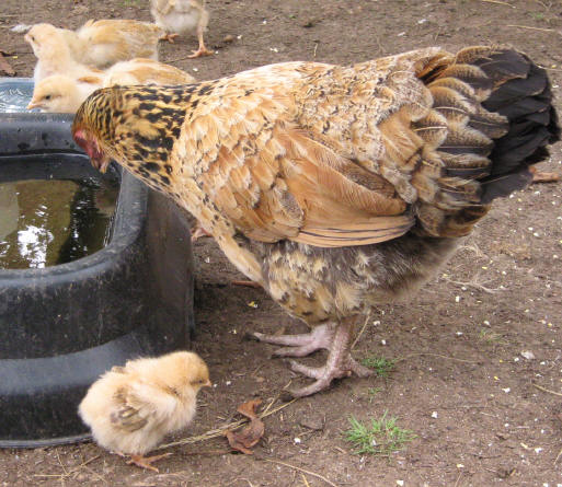 The other hen has just about given up ‘mothering’ her chicks – they are almost as big as her!