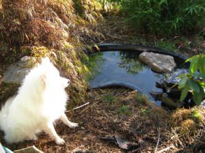 In the courtyard in front of our house is my little japanese garden – at least that’s what I intended years ago when I started this project. But then the invasive bamboo took over and clogged the pond surface with constantly falling leaves, and plants in the pond reached their roots over and choked the pond pump into submission, and for the last year it has mostly been a challenge to keep it from becoming a mosquito heaven, and keeping the dogs from jumping into the stinky stagnant water. Yuk!