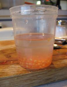Separate the seeds from the pulp as much as you can. and rinse them in a fine strainer, then put them in a small jar of water on the windowsill for three days. The pulp will slowly let off the seeds and float to the top. I pour it off and replace with fresh water every day.