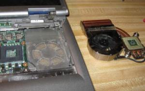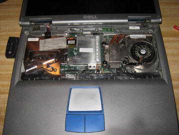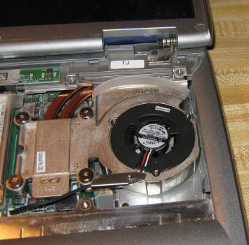 A couple weeks ago the fan gave a sad little squeel and quit. Without the fan the laptop could only run for a couple minutes at a time without overheating. Once again to eBay, where I found a new fan and heatsink combo. While waiting for it to arrive I pulled the laptop apart.