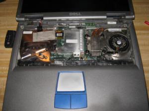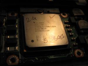 I did a bit of research, went on the Dell forum to double check my understanding, and went on eBay again, this time looking for a Pentium 4 CPU, with a 400MHz bus and 512k cache. I had my choice of CPU speeds, since the laptop requires the more plentiful desktop CPU, not a laptop CPU, so there were many to choose from. I went with a 2.4GHz, hoping that would not increase the laptop’s cooling issues. Then I sat back and waited for my parts to arrive.