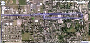 I was looking at an article about Google Street View, and it hadn’t occurred to me to check and see if I could see my house there. I had checked a long time ago when they first started doing it, but they hadn’t got out this far yet. Well, they still haven’t got out to my house, but to my surprise, they had barely got to my town! In fact when you drag the street view icon over the map, you can see what they did get so far…