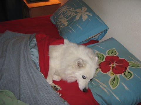 If only he had stayed in bed! But instead he went out this morning and chased the stray cat who lives in our hay shed and went right under the floor of the shed – where there was apparently a cat-sized exit hole, but not a dog sized one! So while the cat skedadled off and dissapeared, Barclay was left under the floor, crying and whining. I called him, but he just cried back. I pulled back all the plywood panels to get access under there, and I could hear him, but I was hesitant to climb under there in the dark, spidery recesses. I went and got a flashlight, with his cries in my ears the whole way and ran back, but flashing it around and calling him, I still couldn’t see where he was. Then I thought ‘If I crawl under there and get stuck…’, so I left the flashlight under there and ran back to the house to call Dave who was on his way into town. Just as Dave answered his cell Barclay come running out of the shed at top speed – still looking for that cat!