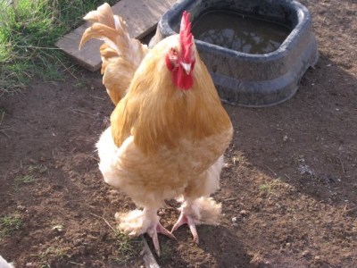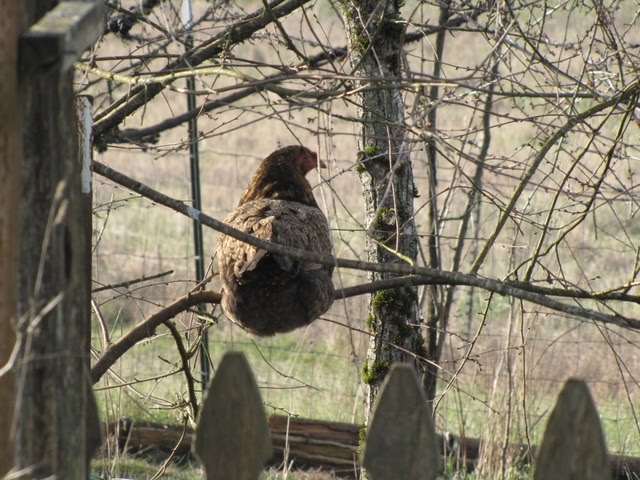 Tough decision time – I like Copper, he’s been a very nice rooster. He is big and beautiful, and well behaved. He gets on fine with the other rooster too. Only problem is, he loves the ladies! A little too much. The ladies are getting tired of getting attention from two roosters. Every time I go check on them I find hens sitting on the chair, or up in the trees, trying to get away from him!