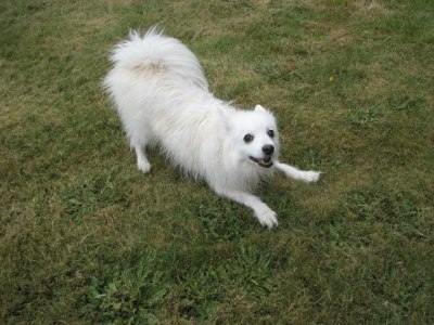 Alki was almost 15, and we got her when she was 8 weeks old, in fact we met her litter while they were still blind and in the box with their mama, who was also a wonderful dog and convinced us she would have a great temperament. One of my favorite stories is how we met her. The breeder had two girl pups left, and we got to choose. She said ‘take them out on the lawn and play with them and see which one fits you better, but I recommend this one’ and handed us a pup. We took her out on the lawn and put her on the grass and Dave called her and she toddled over to him, and then I called her and she toddled back to me, and she was so sweet and adorable. Then we went back in and she handed us the other pup. We took this one out and Dave called her and as soon as I set her on the grass whoosh – she took off running – away! Dave jumped up and grabbed her and brought her back, and I called her, and as soon as her feet hit the grass – zoom – she ran away again! Dave caught her and we took her back inside, the puppy wriggling and trying to get away, and told the breeder – we’ll take this one! ‘Are you sure?’ she said, knowing the other one was sweet and mellow, and we were first-time owners. ‘Yup, this is the one’ 🙂