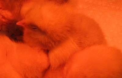 Today I brought home 20 chicks – 10 Buff Orpingtons, and 10 feather-footed cochins. I can’t wait to see what the cochins grow into, they are partridge colored, red, white and buff, and maybe a black or blue in there too. They were still unloading chicks from the packing crates when I got to the feed store this morning, so they packed mine right up in a little box and I brought them straight home to their brooder box which was all warmed up and outfitted with food and water.