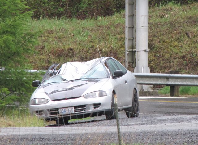 Not ours, luckily. Yesterday morning I looked out the window to see this car parked at the foot of our road. It looks like they hit a deer, and it just demolished that car. Hope the people inside were ok. I suppose we would have heard sirens if they had called emergency services. By the afternoon it had been towed away.