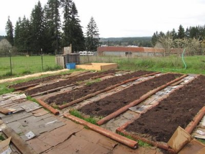 My next challenge is to get all that old compost cleaned up enough to use (there are chunks of sticks and stuff in it), and move it to the garden, which is looking pretty good. I was able to spread peat moss over most of the beds – though I still need a couple more bales of it, mostly to fill my raised bed. I spread flakes of straw on the ground to start killing the grass where the potatoes are going to go. The cardboard is doing a good job on most of the grass, now I just need to take care of the places where the grass is pushing up under the edges of the cardboard, I pretty much need to lay down more cardboard anywhere I still see green. And I guess I could stand to get some PVC to make hoops for some row covers and start getting some lettuce and spinach growing before it gets too warm.