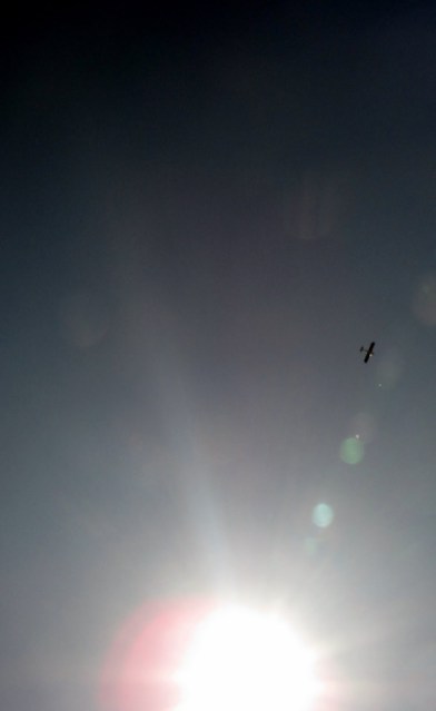 An airplane flying overhead. This guy kept doing laps around our neighborhood, fairly low despite how small he looks in the picture. I suspect he’s the picture guy. They take pictures of your property then come around a few weeks later and show you a framed and matted picture of your property and offer to sell it to you for an outrageous price. We refuse, of course, and I’m sure he gets back in his truck, slides the next house picture into the frame, and goes and knocks on their door. Perhaps he gets enough takers to make flying around the countryside taking pictures worthwhile, but I can’t imagine. We don’t get a lot of door-to-door out here (mostly the picture guy, the meat truck, Schwanns, and Jehovah’s Witnesses) but I thought that was a particularly odd gig.