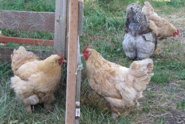 The other day I saw someone on the PDX chicken list offering up for adoption a buff cochin hen named Betsy. She said Betsy was broody, and a bit of a bully to the other pullets. I piped right up and said I wanted her! I love buff cochins, like my dearly departed Penny, and I doubt she’ll be any trouble even if she decides to try and be a bully, the rooster seems to keep all the girls in line around here.