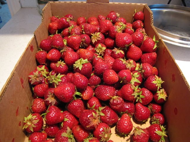 Last year when I made Jam, I hade to make Freezer Jam, because I didn’t know how to can things. But now I have taken the Master Food Preserver classes through the extension service, and I am practically an expert (in book-learning), with all the USDA approved food safety information at my fingertips! I need practice though, so I bought a flat of Strawberries and spent the day making Jam!