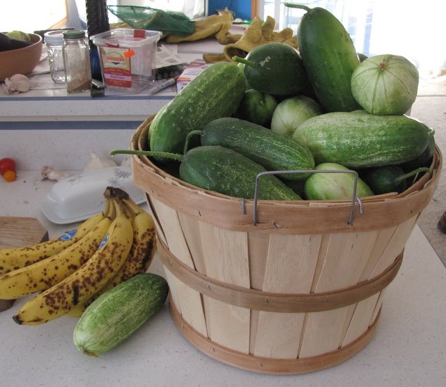 I think the rest of the oversize cukes will go on the compost heap. They are too big and seedy, and they’ll just get soft if I try to pickle them. It’s my own fault for not knowing when to pick them, or maybe it was just the weather this year.