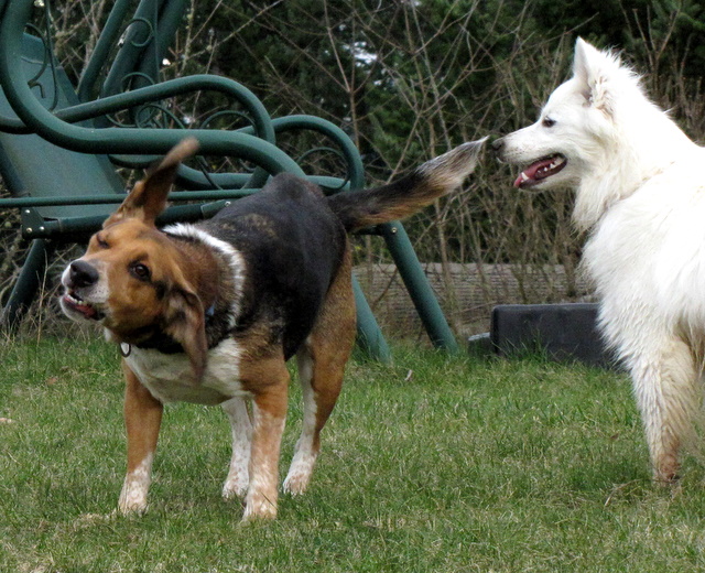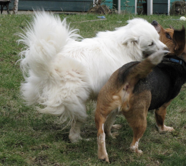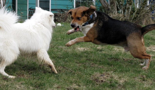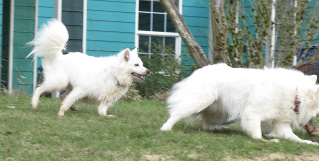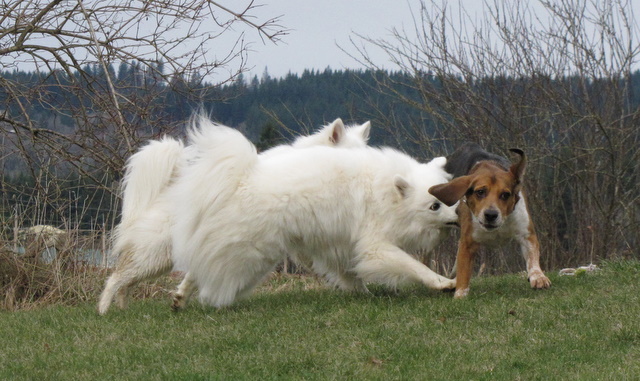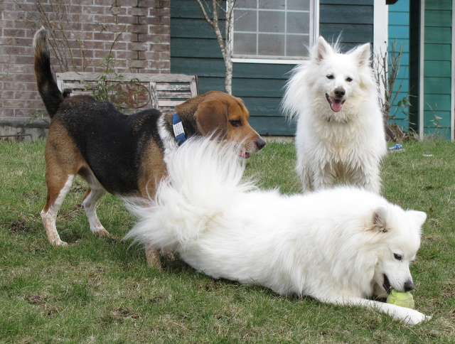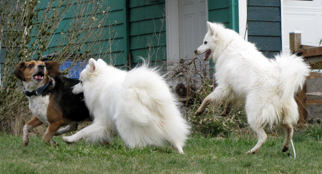 The weather people have been talking about a snow storm coming all week. They were calling for 12 inches (which would be pretty unusual) but the latest report sounds like we’ll just get a dusting. Since there’s currently no sign of snow – or even rain – I took the opportunity to spend a bit of time photographing the pooches having their daily play session.