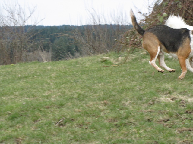 While I was at the bottom of the hill photographing the kestrel, the dog started getting rowdy, and since they were on top of the hill, I had a nice doggie-eye-level view to photograph their antics – without having to lay down on the grass 🙂