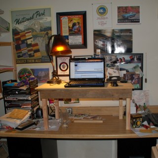 I’ve been reading a lot about ‘standing desks’ – desks that are tall enough to stand at and work. It sounds like a good idea. I spend entirely too much time at my computer, lulled into a trance, following link after link, reading articles I’ll never remember. I could use to be a little less comfortable at the computer! Plus if you’re standing you’re making your muscles work to hold yourself up, instead of slouching into a lump, chin on hand, semi-comatose (I’m just describing myself – not necessarily anyone else!)