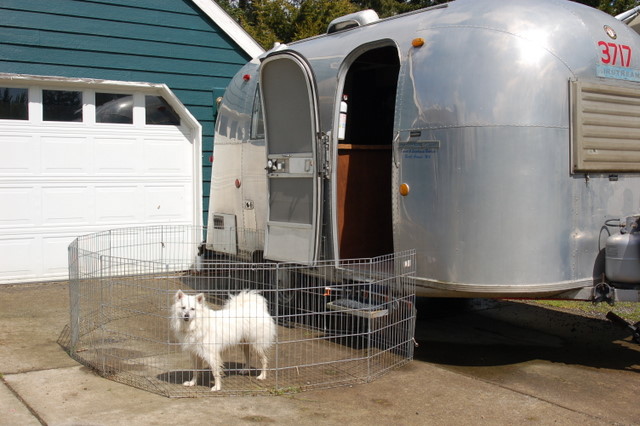 We have a camping trip coming up, and I’m planning to take both dogs. I thought having a little ‘yard’ for them would be a lot of help. Our trailer is very small, and space around the door is crowded. So I took our X pens and spent most of the day making this: