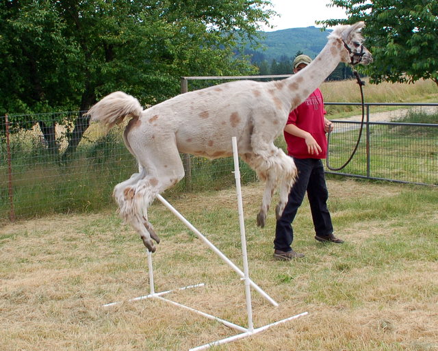 Ooops! I went back to admire your photos again and realized that was a llama jumping that high pole. Such a little, petite, polka dot llama, too.