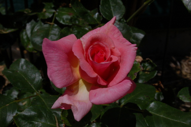 Using my 28-80mm lens, I went out to take some pictures of a beautiful rose I spotted on the bush out in the dog run.