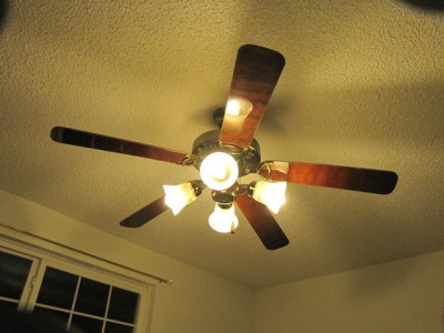 It was seriously HUGE, and hung down so low Dave could hit his head on it, and we both regularly bumped it when putting on shirts, or doing anything that involved raising our arms above our head. I couldn’t do exercise videos without moving off to the side away from it! I can’t imagine laying in bed and having that giant fan whipping away overhead!