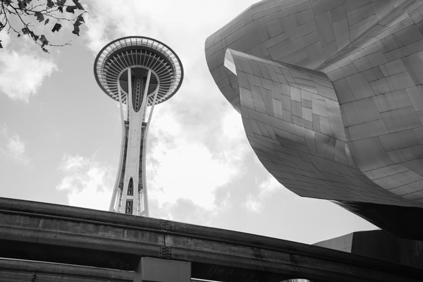 By afternoon we had seen the whole view and headed out in search of pizza. We tried a place that had great Yelp ratings near the zoo, but it was too foo-foo. We drove on into town and parked near the Space Needle, and found a good pizza joint a block or so away. Here is the view from where we parked. This will be more relevant in a moment…