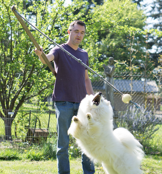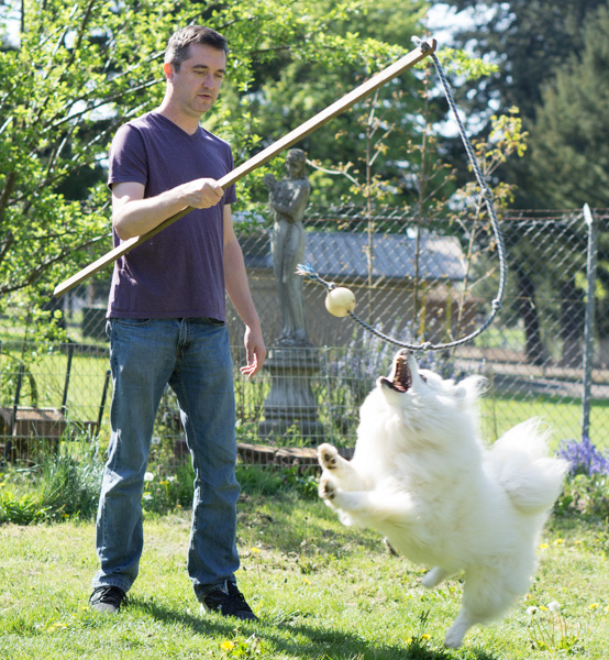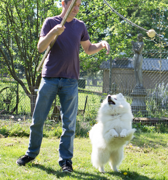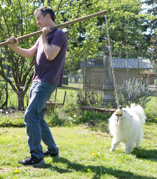 It was such a nice day, he went out and played stickball with Barclay for a few minutes. Barclay is completely obsessed with the stickball, that’s all he wants to play. Got some great shots of Barclay suspended in mid-air. So cute!!