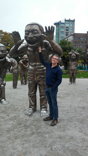 After the Aquarium we headed to English Bay Beach, and I found a restaurant with a view on Google, so that’s where we were headed. The XF Season 11 trailer had just come out the week before, and it showed a scene of Mulder next to some crazy laughing statues.