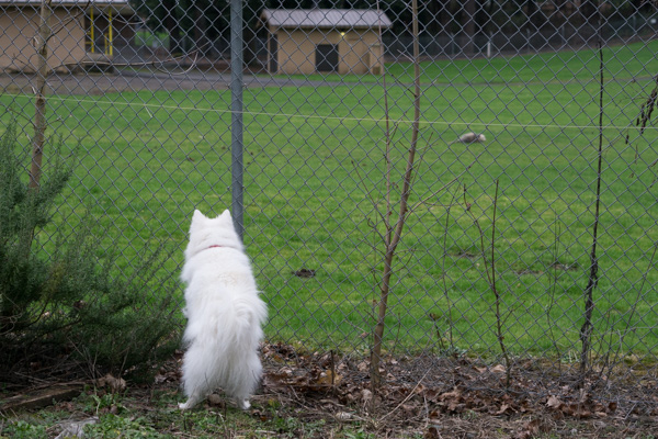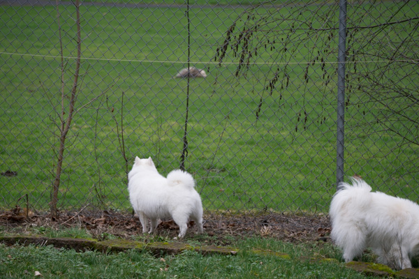 Sake and Sitka were visiting a couple weeks ago when I heard the dogs going absolutely nuts in the backyard. I ran out to see what the big deal was, and there was a giant Possum crossing the waterpark!