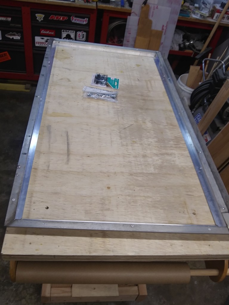 So I removed the plastic insert from the thin aluminum frame of the rockguard, and built my new aluminum frame to sit inside of the original auminum frame. That original frame would be key to locating the original hinge and latches so the new rockguard would fit right back into place on the body of the trailer without drilling any new holes.