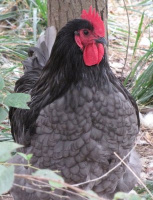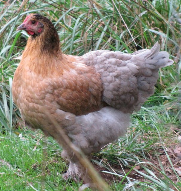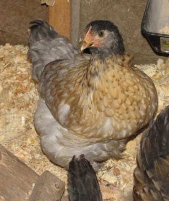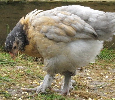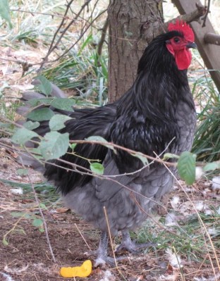 I added the blue orpington roo because he became available locally, and I want to breed him to buff orpington hens and get blue/buff orpingtons (my blue/buff girls right now are crossed with cochin, so they have feathered feet which get very muddy – orpingtons have clean feet). For $5 I couldn’t resist him – and he came from a show home – he’s HUGE and gorgeous!