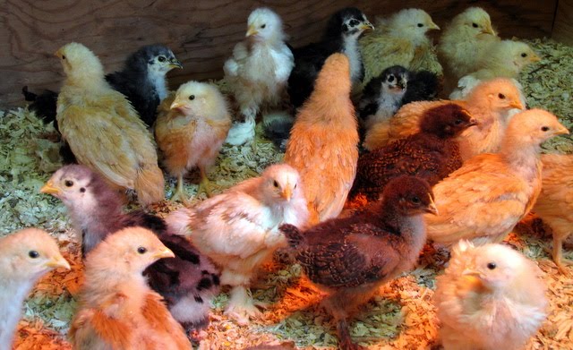 Warm, fed, and dozing under the heat lamp. Happy chicks!