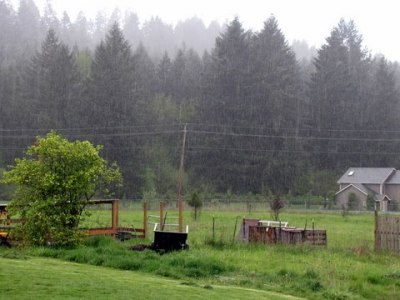 I started out using my waterer I used for the chicks last year, but they ended up hopping right into it, so I switched to this chicken-waterer that has just a shallow trough so no one will get their butt wet standing in it.