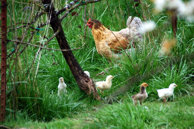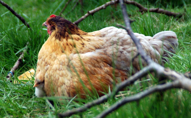 Well, this has been a miserable week, going out and finding mutilated chickens every morning, and not having my favorite, Beautiful, clucking around under foot. I think the predator was sneaking into the coop while it was open during the day, bedding down under the nest boxes (there’s a hidden area under there) and then coming out at night to terrorize the chickens. It ate one of the little chicks right before we left for Memorial weekend, and left two dead in the coop for me to find. Then it ate the other two while we were gone. Then it seemed to take a break before coming back for the massacre the last few days.