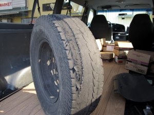 Holy crow! I’ve never seen a tire do that!!! As you can see it doesn’t go all the way around, so you only see it if the van is parked just so. Well, actually…