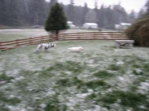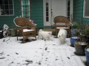 He was young and goofy, but grown up enough to control himself. He was good with cats, and except for trampling Alki once and hurting her back, he was good with her, and backed down when she told him to back down. But we soon discovered his true self – he was dumber than a post, dumber than dirt, he was ‘special’ in a ‘rides the short bus’ kind of way. We were used to Alki, who is smart as a whip and regularly out-wits us. Alki knew all of her toys by name, Chester ate them all. Alki knew a ton of tricks, Chester knew one, and he got nervous and peed on the floor if you tried to teach him anything new. Alki had nearly earned her CGC, Chester took two trys to get anything out of basic obedience class (there was that nervous peeing on the floor thing again). In his defense, his previous owners had apparently beat the tar out of him. He threw himself on the floor and squeeled if you made a move towards him too fast. I think he was beaten to the point it left him retarded.