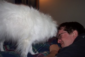 In addition to his personality quirks, he had some serious health problems. He had bladder stones and required special food and medicine. He also had severe skin allergies, and that required special food, but we never have found a food that works for both. The skin allergies manifested in ear infections, so he had stinky ears that needed to be regularly cleaned and have special medicine put in them for the first 6 or 7 years we had him, until we found a food that didn’t trigger the allergies. Because of the skin problems you can’t pet him without getting a sort of stinky, Chester-slime on your hands. Regular bathing helps, but he hates it, and if you do it too much it dries out his skin and makes it more irritated. In his later years he has gotten arthritis which caused one back leg to atrophy and hang useless, he has a heart murmur, and he had an incident a few months ago that the vet thought was caused by a tumor in the lungs, but medicine is controlling it. With all the medicines and prescription foods and vet visits, he has not been a cheap dog to own, not by a long shot.