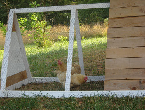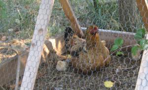 So at 5am I got dressed and went out and caught the four of them from the pen I had left them in last night, put them in a dog crate, and put the crate in the chicken shed. Once they were in the dark shed they went back to sleep. Unfortunately when I walked over to the shed I spotted something else out of place – my four little splash chicks had escaped the chicken tractor and were running around the back field.